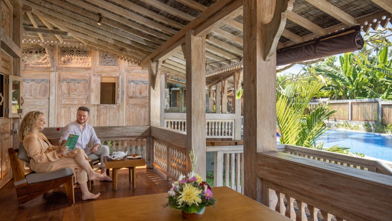 Each villa, including the 1 Bedroom Joglo Style Villas and the 3 Bedroom Villa, features its own private pool, allowing you to enjoy a refreshing swim at your convenience.