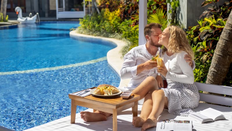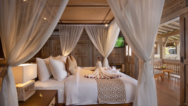 Experience traditional Balinese charm with a modern twist in our 1 Bedroom Joglo Style Villas. These three exquisite villas offer a unique and intimate setting, each with a pool view to enhance your relaxation. The distinctive Joglo architecture combines with contemporary amenities to create a cozy yet stylish retreat. Perfect for romantic getaways or solo travelers seeking a tranquil escape.