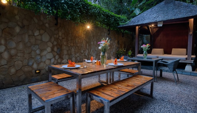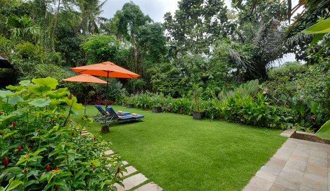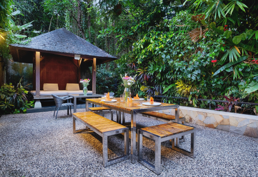 In addition to the pool, our villa features cozy outdoor seating areas and a lush garden, ideal for meditation, yoga, or simply enjoying the serene surroundings.